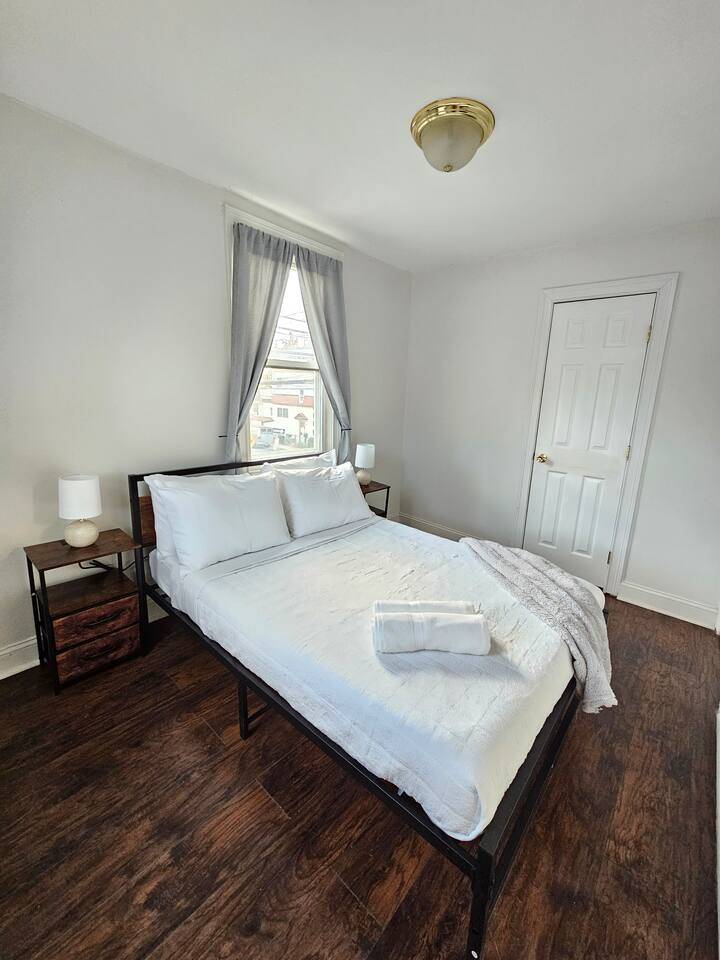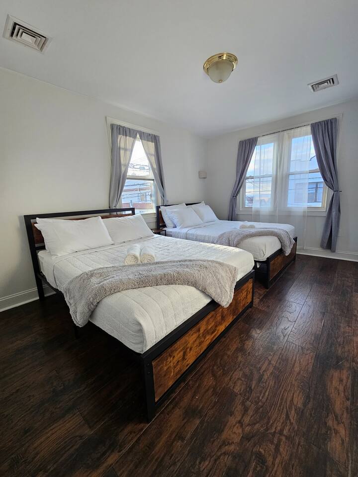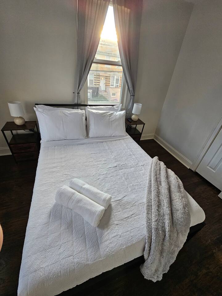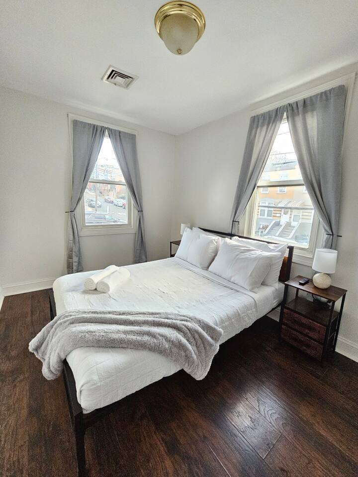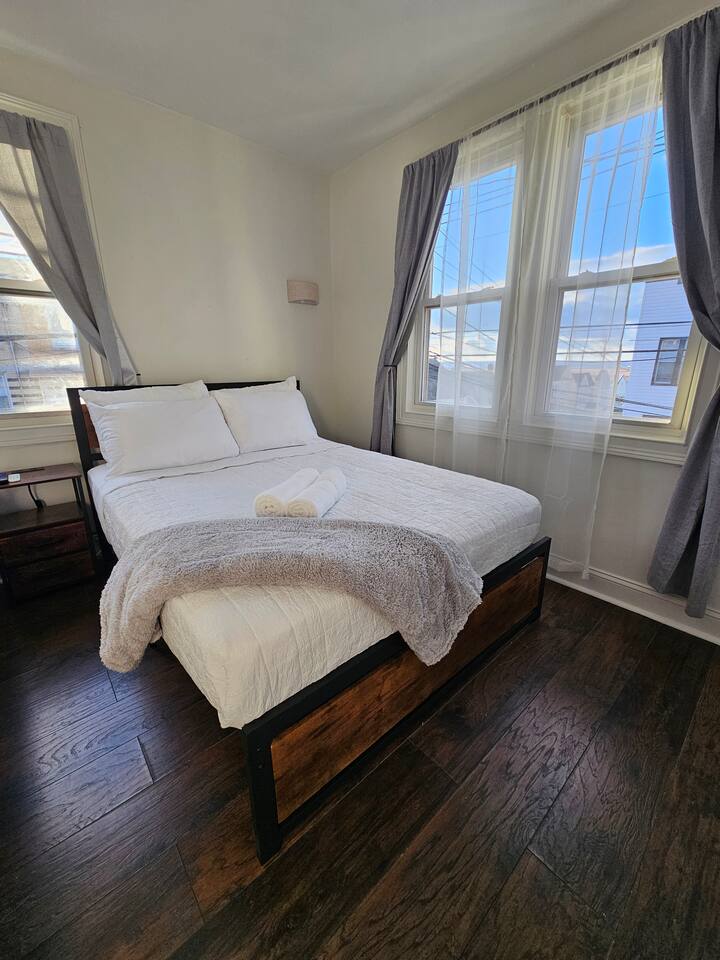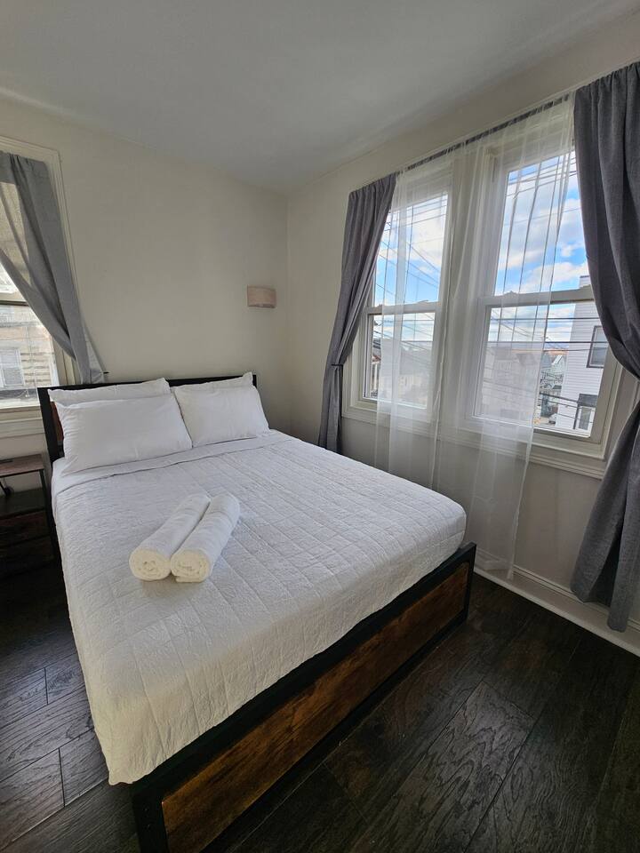 * 1100 Square feet modern- cozy spacious apartment * About 20 minutes from Newark International Airport (EWR) * Walking distance to 4 different Bus Stops for easy Transportation * 10-15 min Drive to American Dream, Met Life Stadium & NYC * Walking distance to shopping centers and restuarants * 2 Bedrooms * 3 Beds, 1 sofa bed * Queen size bed suites with memory foam mattress * A 90 Score from WalkScore * Netflix, Disney+, Amazon Prime * 32” LED TV’s in each Bedroom * SUPER FAST WIFI-High Speed Internet * Streaming Services: Netflix, Disney+, Amazon Prime * Fully Equipped Kitchen * Linens, Towels, and Toiletries Provided * Professional cleaning service before every guest We love cleanliness and ensure all surfaces have been thoroughly washed and sanitized with disinfectant wipes and all linens and towels are bleached. The Kitchen is fully loaded with appliances such as a microwave, fridge, stove along with mugs, glasses, dishes, knives set, cooking pan set and cutlery. The Property: This is a triplex, multi family dwelling home. The apartment is a 3rd floor unit. The apartment is completely on one level. Outside: We have a distinctive White Door with a smart lock for making a seamless check in and check out. We also have a 4 Digit Code Lock box as a backup. The Apartment: Upon opening the door you are dazzled by bright rows of LED Recessed lighting Throughout the apartment in this centennial colonial home, which has been completely renovated in 2022. Bedrooms: Offers a comfortable memory foam mattress and 100% Egyptian Cotton Sheets to ensure a great night's rest.There is a nightstand with desk lamps and outlets for easy laptop and cellphone electrical connections. There is plenty of storage with a closet equipped with tons of hangers, iron, and iron board. There is a 32” LED TV 🖥 for enjoyment with Netflix, Disney +, and Amazon Prime. The Kitchen: A four top eat-in dining room table is perfect for family and Friends to sit down and enjoy meals cooked in our amazing kitchen or take-out from the many amazing restaurants located nearby. Kitchen has a full size Stove, Microwave, and Oven for cooking your favorite meals. The Kitchen is fully stocked with the essentials and more. This Kitchen includes a toaster, a blender, and a coffee maker. Bathroom: This bathroom has a tub with a beautiful curtain and a showher head with more than various spray settings. There are hangers for towels to dry.