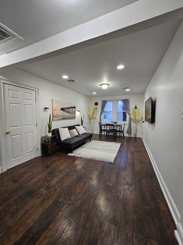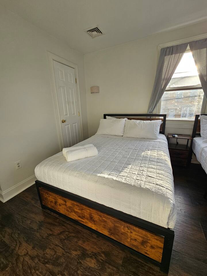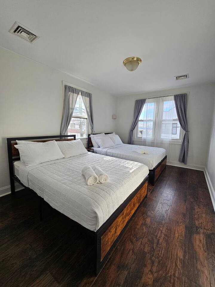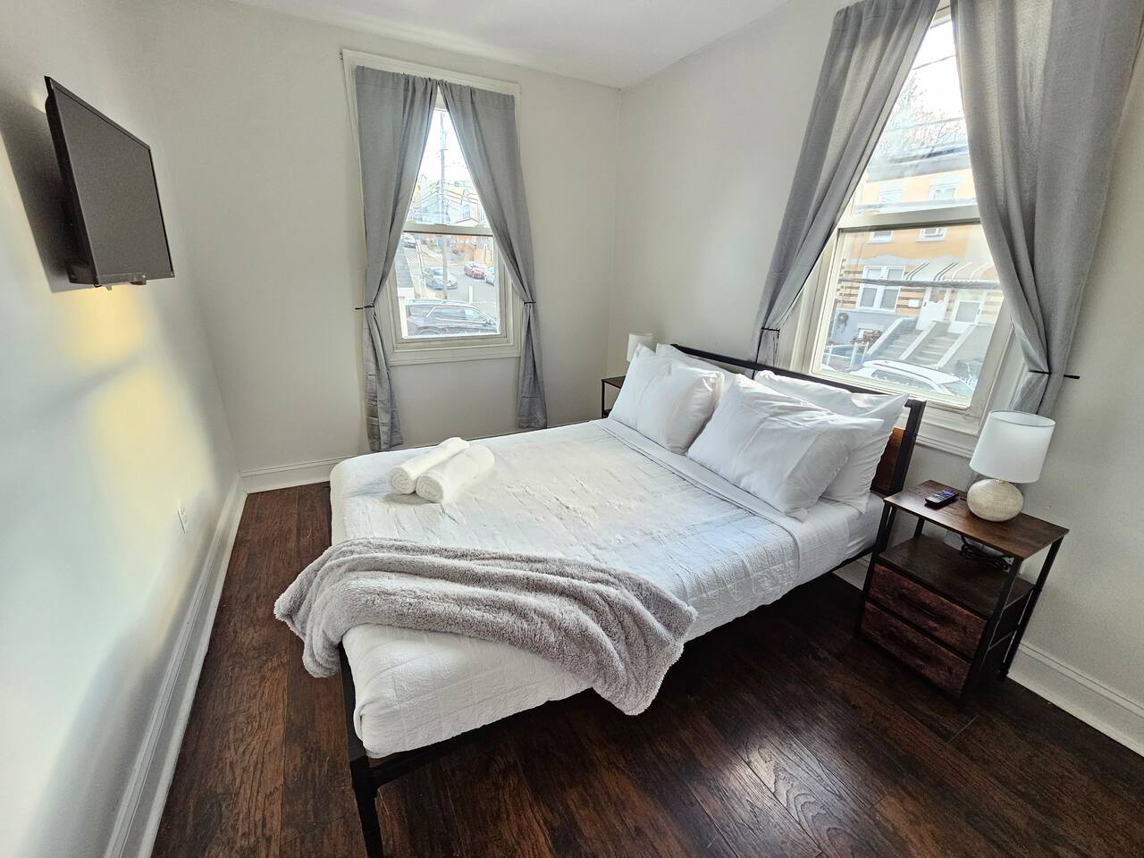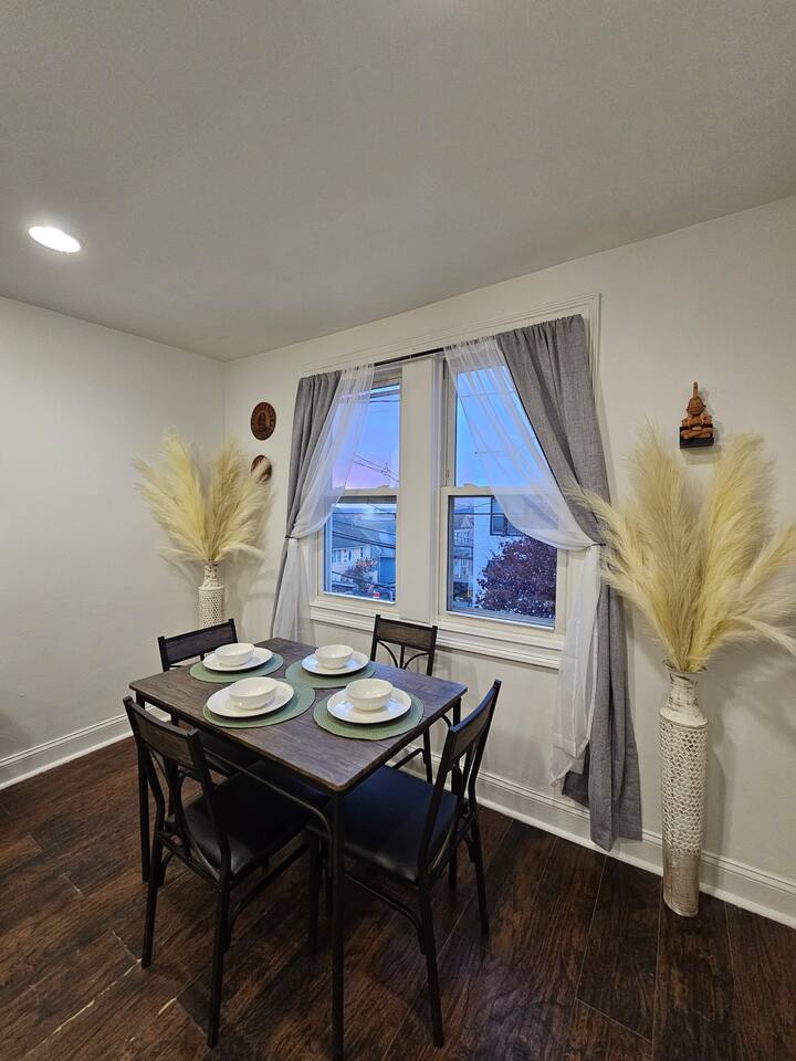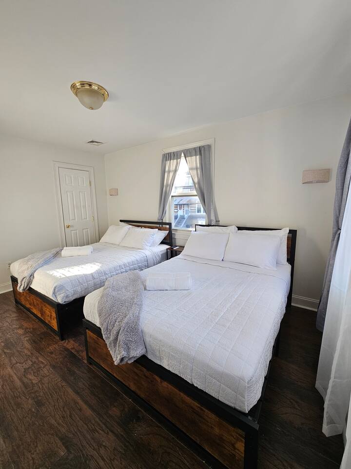 * 1100 Square feet modern- cozy spacious apartment * About 20 minutes from Newark International Airport (EWR) * Walking distance to 4 different Bus Stops for easy Transportation * 10-15 min Drive to American Dream, Met Life Stadium & NYC * Walking distance to shopping centers and restuarants * 2 Bedrooms * 3 Beds, 1 sofa bed * Queen size bed suites with memory foam mattress * A 90 Score from WalkScore * Netflix, Disney+, Amazon Prime * 32” LED TV’s in each Bedroom * SUPER FAST WIFI-High Speed Internet * Streaming Services: Netflix, Disney+, Amazon Prime * Fully Equipped Kitchen * Linens, Towels, and Toiletries Provided * Professional cleaning service before every guest We love cleanliness and ensure all surfaces have been thoroughly washed and sanitized with disinfectant wipes and all linens and towels are bleached. The Kitchen is fully loaded with appliances such as a microwave, fridge, stove along with mugs, glasses, dishes, knives set, cooking pan set and cutlery. The Property: This is a triplex, multi family dwelling home. The apartment is a 3rd floor unit. The apartment is completely on one level. Outside: We have a distinctive White Door with a smart lock for making a seamless check in and check out. We also have a 4 Digit Code Lock box as a backup. The Apartment: Upon opening the door you are dazzled by bright rows of LED Recessed lighting Throughout the apartment in this centennial colonial home, which has been completely renovated in 2022. Bedrooms: Offers a comfortable memory foam mattress and 100% Egyptian Cotton Sheets to ensure a great night's rest.There is a nightstand with desk lamps and outlets for easy laptop and cellphone electrical connections. There is plenty of storage with a closet equipped with tons of hangers, iron, and iron board. There is a 32” LED TV 🖥 for enjoyment with Netflix, Disney +, and Amazon Prime. The Kitchen: A four top eat-in dining room table is perfect for family and Friends to sit down and enjoy meals cooked in our amazing kitchen or take-out from the many amazing restaurants located nearby. Kitchen has a full size Stove, Microwave, and Oven for cooking your favorite meals. The Kitchen is fully stocked with the essentials and more. This Kitchen includes a toaster, a blender, and a coffee maker. Bathroom: This bathroom has a tub with a beautiful curtain and a showher head with more than various spray settings. There are hangers for towels to dry.