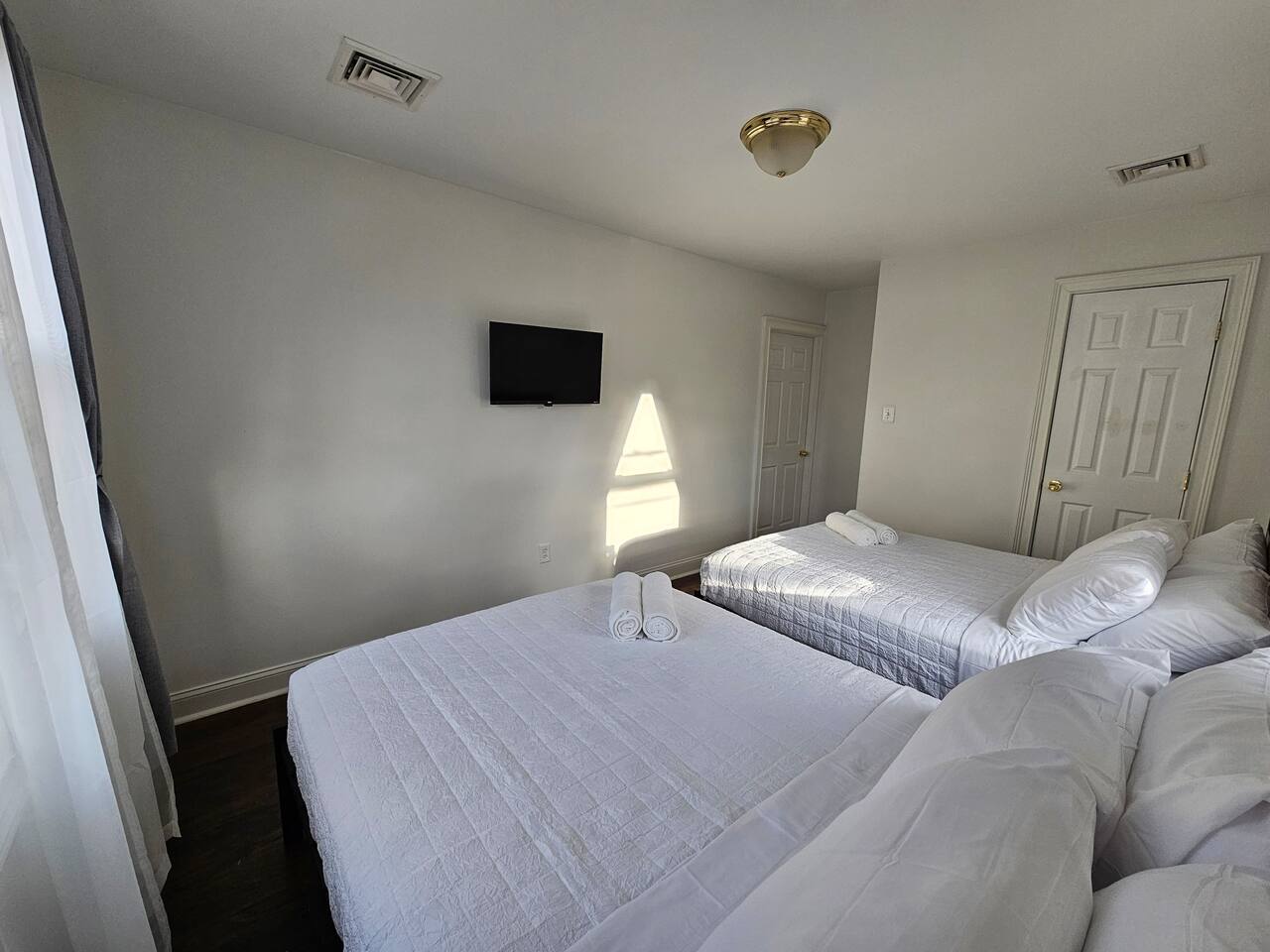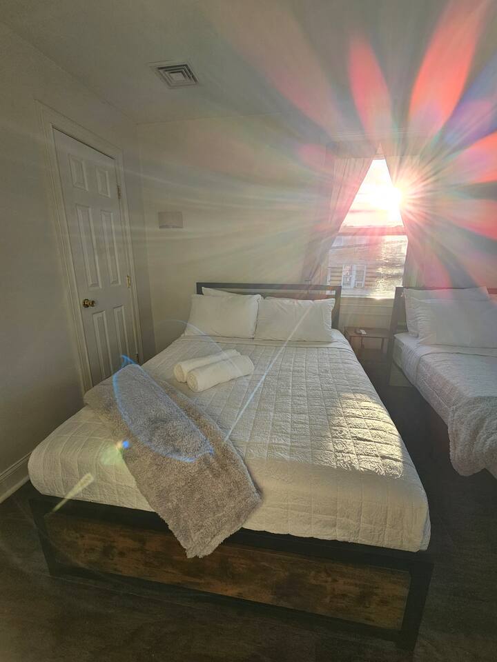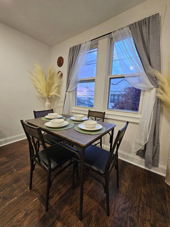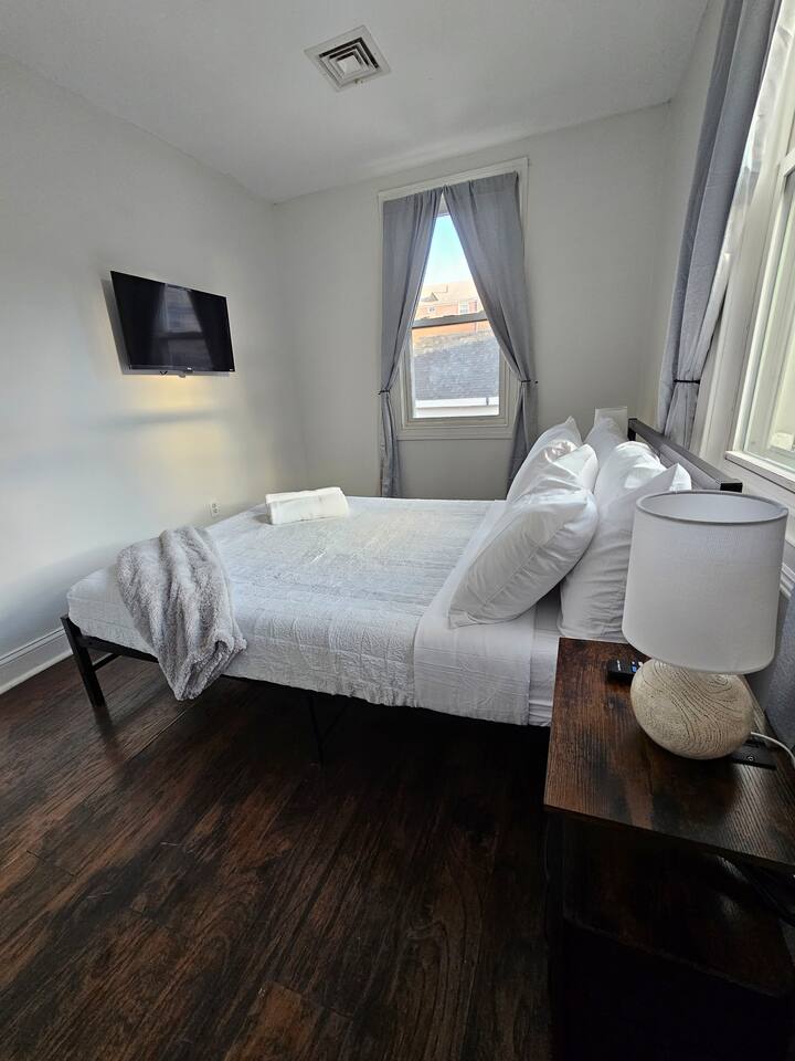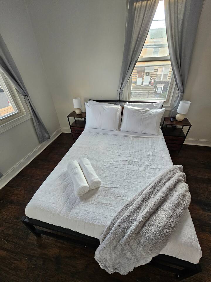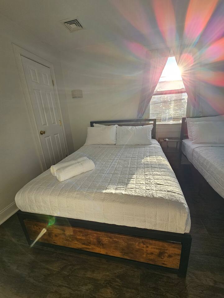 * 1100 Square feet modern- cozy spacious apartment * About 20 minutes from Newark International Airport (EWR) * Walking distance to 4 different Bus Stops for easy Transportation * 10-15 min Drive to American Dream, Met Life Stadium & NYC * Walking distance to shopping centers and restuarants * 2 Bedrooms * 3 Beds, 1 sofa bed * Queen size bed suites with memory foam mattress * A 90 Score from WalkScore * Netflix, Disney+, Amazon Prime * 32” LED TV’s in each Bedroom * SUPER FAST WIFI-High Speed Internet * Streaming Services: Netflix, Disney+, Amazon Prime * Fully Equipped Kitchen * Linens, Towels, and Toiletries Provided * Professional cleaning service before every guest We love cleanliness and ensure all surfaces have been thoroughly washed and sanitized with disinfectant wipes and all linens and towels are bleached. The Kitchen is fully loaded with appliances such as a microwave, fridge, stove along with mugs, glasses, dishes, knives set, cooking pan set and cutlery. The Property: This is a triplex, multi family dwelling home. The apartment is a 3rd floor unit. The apartment is completely on one level. Outside: We have a distinctive White Door with a smart lock for making a seamless check in and check out. We also have a 4 Digit Code Lock box as a backup. The Apartment: Upon opening the door you are dazzled by bright rows of LED Recessed lighting Throughout the apartment in this centennial colonial home, which has been completely renovated in 2022. Bedrooms: Offers a comfortable memory foam mattress and 100% Egyptian Cotton Sheets to ensure a great night's rest.There is a nightstand with desk lamps and outlets for easy laptop and cellphone electrical connections. There is plenty of storage with a closet equipped with tons of hangers, iron, and iron board. There is a 32” LED TV 🖥 for enjoyment with Netflix, Disney +, and Amazon Prime. The Kitchen: A four top eat-in dining room table is perfect for family and Friends to sit down and enjoy meals cooked in our amazing kitchen or take-out from the many amazing restaurants located nearby. Kitchen has a full size Stove, Microwave, and Oven for cooking your favorite meals. The Kitchen is fully stocked with the essentials and more. This Kitchen includes a toaster, a blender, and a coffee maker. Bathroom: This bathroom has a tub with a beautiful curtain and a showher head with more than various spray settings. There are hangers for towels to dry.